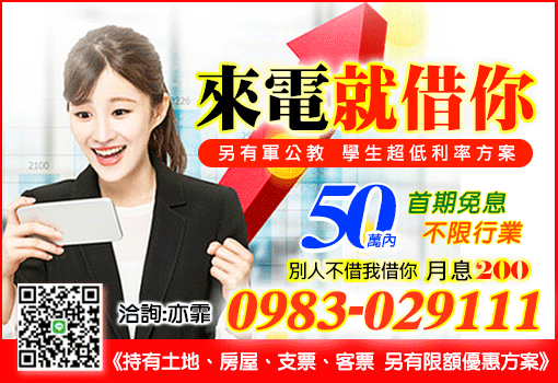 50萬內,月息200,當天辦理當天撥款,條件不佳也可辦理另有軍公教、學生超低利方案優質專業借貸,台中借錢請洽第一借錢網:0983-029111,LINE:0983029111彰化借錢、南投借錢亦有承做持有土地、房屋、支票、客票另有限額優惠方案https://168cash.com.tw/adv/detail/1670?area=taichung&cid=0