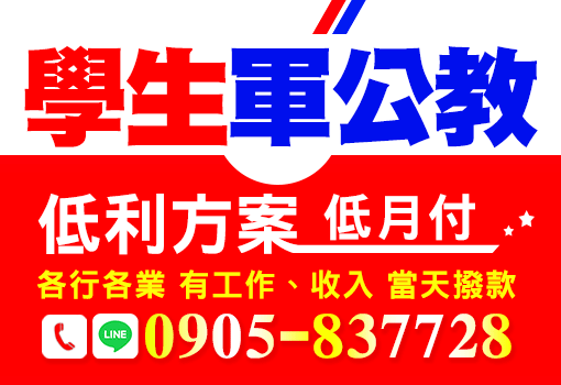【北中台灣救急專案】學生軍公教低利借錢,台北至台中當天撥款在生活步調緊湊的北台灣與中台灣,無論您是身處台北、桃園的上班族,還是在新竹、台中奮鬥的軍公教人員與學生,資金周轉的壓力總是在不經意間襲來。我們理解您的急迫,特別推出**「低利、低月付」**的專屬資金方案,讓您輕鬆解決燃眉之急。資金周轉不必等!服務範圍涵蓋台北、新北、桃園、新竹、苗栗及台中。各行各業有工作皆可辦理。主打低利率、低月付,24小時專人服務0905-837728,LINE 直接諮詢更快速,LINE ID:0905837728。