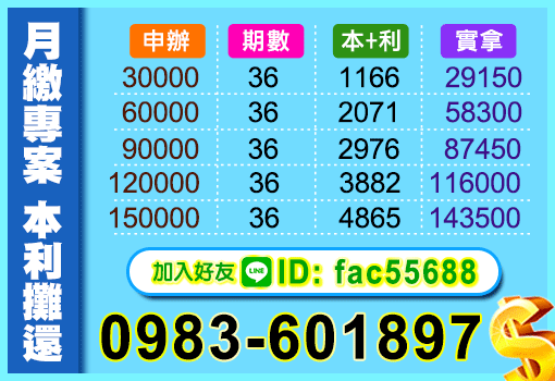 首頁 台中借錢 月繳專案 本利攤還